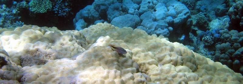 Im März hat das Wasser dort eine Temperatur von ca. 22-23 ° Celsius. Für längere Schnorchelausflüge etwas zu kalt. Deshalb haben wir uns in der hoteleigenen Tauchschule Anzüge geliehen, mit denen wir angenehm bis zu einer Stunde lang Korallen und Fische beobachten konnten. |